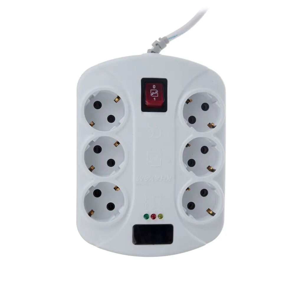 محافظ الکترو سپید مناسب کامپیوتر 2450va با چهار پریز بدون ارت با بدنه پلاستیکی 5 متری