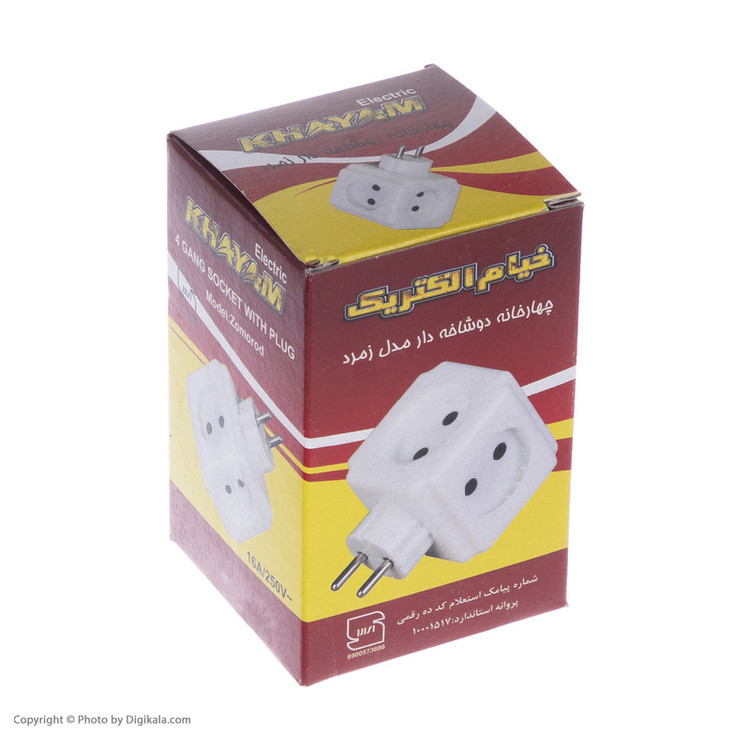 - چهارخانه ارتدار دوشاخه دار - سبک و کم حجم - استاندارد - کیفیت بالا - ساخت ایران - 16 آمپر - مناسب برای دستگاه های با توان بالا