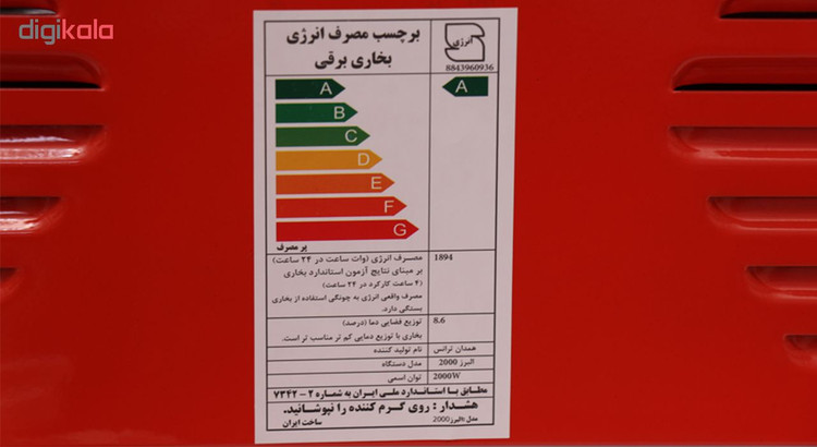 بخاری برقی البرز مدل EH2000 یکی از بخاری های با کیفیت و با حرارت بالای موجود در بازار است که با استفاده از المنت های پر قدرت، محیط را به سرعت گرم می کند. این بخاری با 3 المنت می تواند با حداکثر توان 2000 وات، در فصل سرد فضایی دلپذیر در خانه و محل کار ایجاد کند. این بخاری مجهز به فناوری جابهجایی- تابشی بوده و بدون ایجاد شعله حرارت ایجاد میکند. به همین دلیل نگران کمبود اکسیژن در هنگام استفاده از دستگاه در محیط های بسته نباشید. همچنین فن دستگاه قابلیت گردش هوا و گرم کردن سریع محیط را دارد و با کلید جداگانه ای روشن یا خاموش می گردد. برای بازدهی بیشتر از صفحه استیل منعکس کننده نور و حرارت در پس زمینۀ المنتها استفاده شده است. این دستگاه دارای کلید قطع کن خودکار بوده و در صورتی که دستگاه از حالت تعادل خارج شود، دستگاه به صورت اتوماتیک خاموش می شود. بدنهی دستگاه از جنس پلاستیک بسیار باکیفیت است که در صورت کثیفشدن بهسادگی نیز تمیز میشود؛ البته حتما باید دستگاه را از برق جدا کرد. بخاری برقی البرز مدل EH2000 دارای درجه A در مصرف انرژی و دارای علامت استاندارد می باشد.