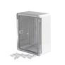 تابلو برق درب شفاف و مات دانوب دارای درجه حفاظت IP65 است و درجه حفاظت این محصول قابلیت استفاده در فضای بیرونی و زیر نم باران را فراهم می سازد و بدنه ای از جنس PVC دارد. این محصول در رنگ طوسی بوده و مقاوم در برابر ضربه است.